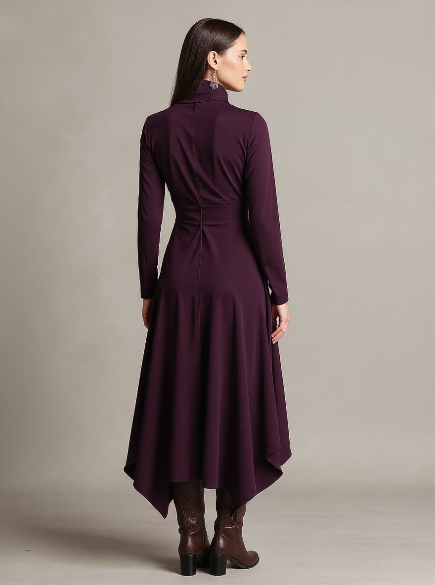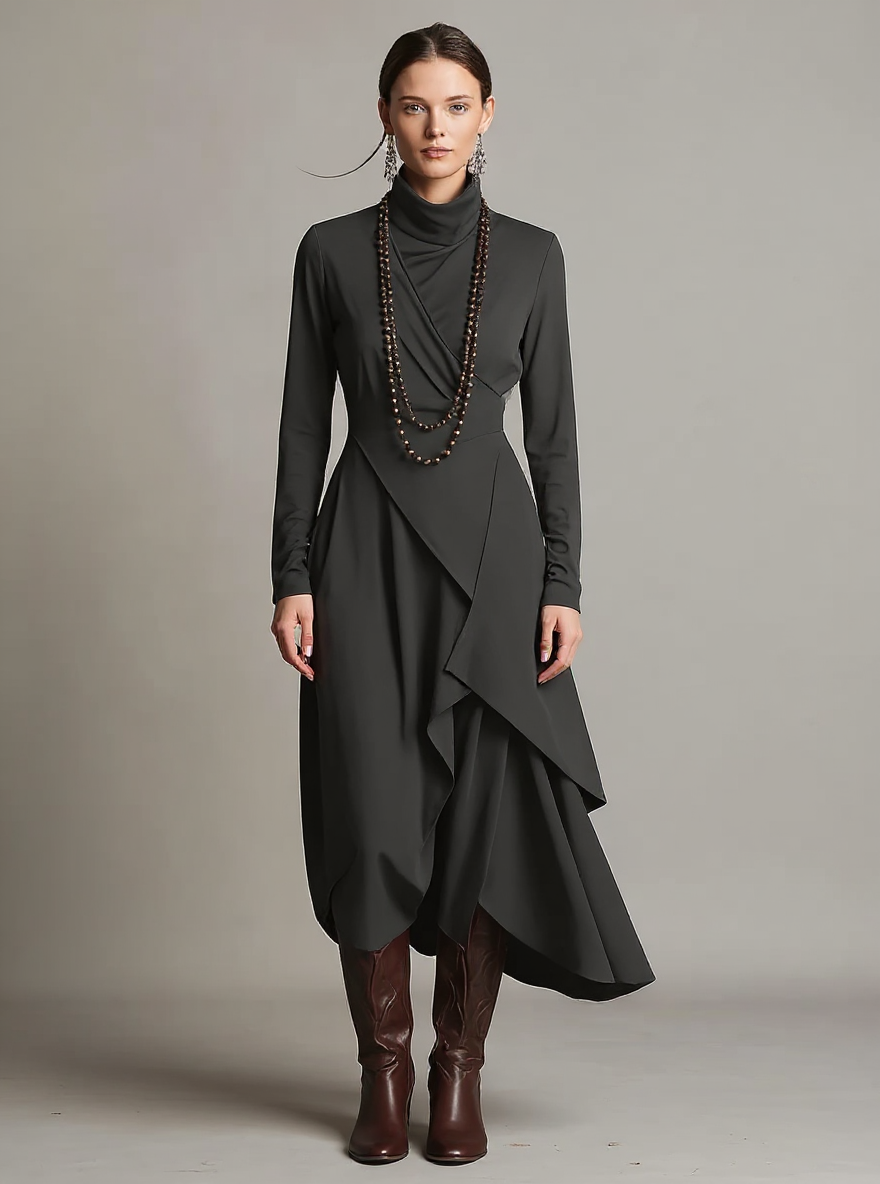 Solange | Asymmetric Draped Turtleneck Cotton Wedding Guest Dress